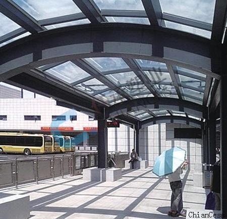 例如在浙江寧波公交場站經營公司的同志介紹說,早幾年,出于美觀考慮,公交候車亭流行玻璃頂棚,但后來發現不太實用。一來不能遮陽,二來遭遇異物墜落不安全。目前,寧波街頭候車亭頂棚多用半透明的陽光板。有色陽光板既可以保證一定的透光率又不會像玻璃一樣對太陽光有一定的阻隔,對外物還有一定的抗沖擊性。所以選擇陽光板做車棚頂棚是佳的選擇。